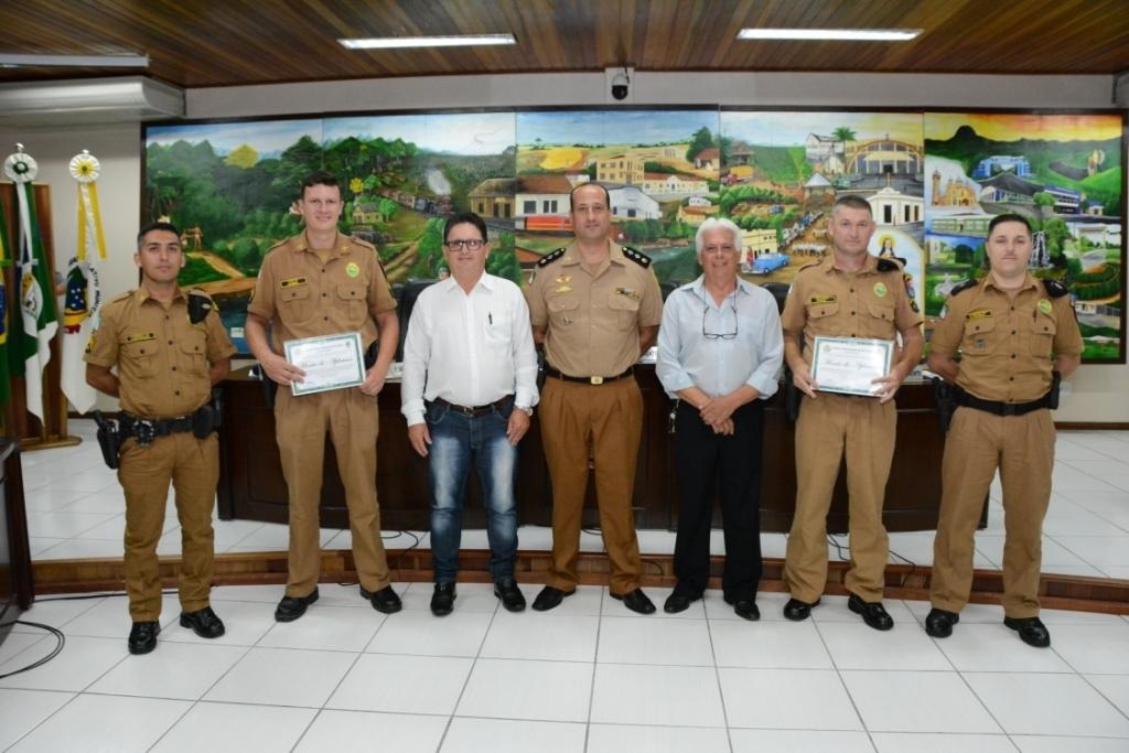 A Sessão foi presidida pelo Vereador Valdir Siqueira e os homenageados receberam a honraria das mãos do próprio Vereador proponente. Além de familiares e amigos, prestigiaram também a Sessão o Comandante da 8ª Cia Independente da Polícia Militar do Paraná, em Irati/Pr, Major Heraldo Correia de Lima, que foi convidado a compor a Mesa Executiva e fez uso da palavra, o Comandante do 2º Pelotão da 8ª Cia, em Rebouças/Pr, 2º Ten. Rafael Martins Oliveira e o Comandante do Destacamento da Polícia Militar em Rio Azul/PR, 3º Sgtº Adenilson Rodrigues.
